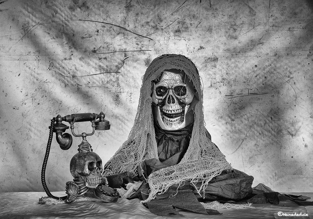 He said he would call so she has been waiting...the minutes turned into hours which turned into days then weeks then months...till the years sped by...and yet, unduanted and full of hope, she waited...though that phone never rang, she waited...as the skin fell off and the veil hung over her dried out bones, she waited...not realizing all this time that she had simply been...