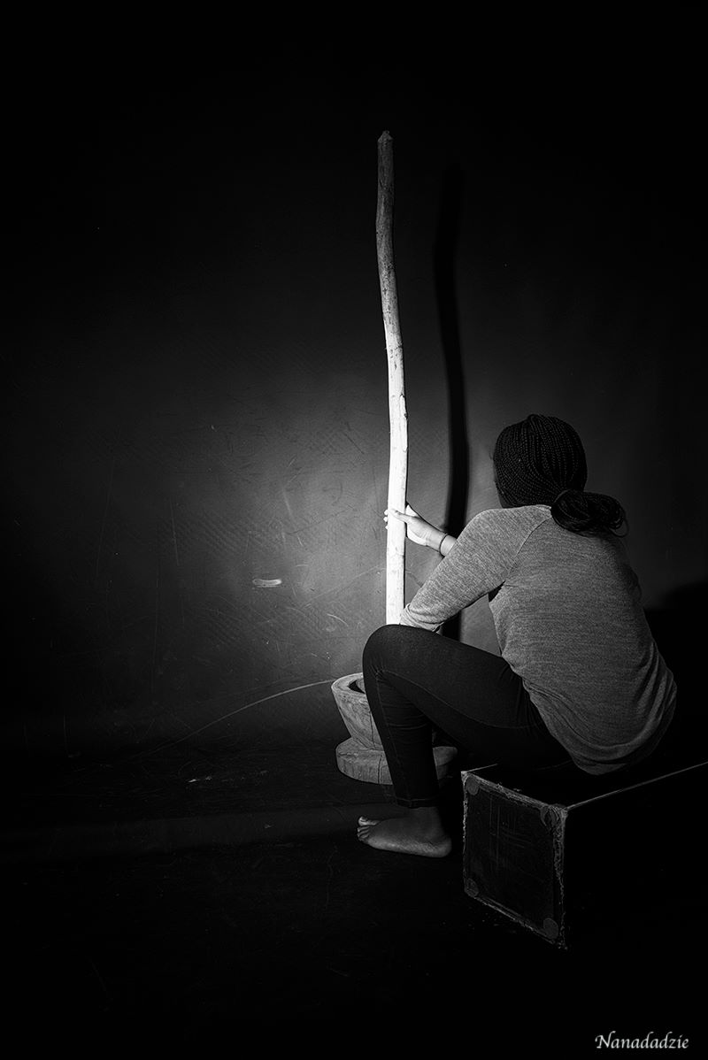 Lights! Camera! Action...only that in real life, there is no spotlight, no camera...just a mother, her pestle, mortar, cooked cassava and plantain in a...