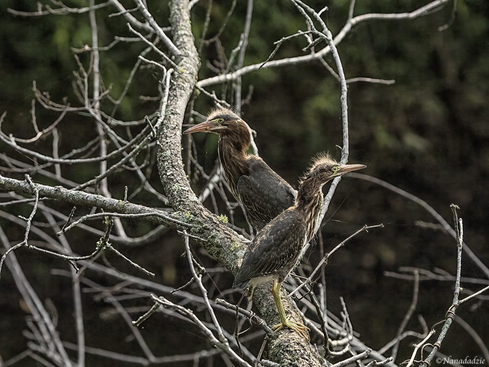 Once upon a time, this green heron duo was resting peacefully in this tree...